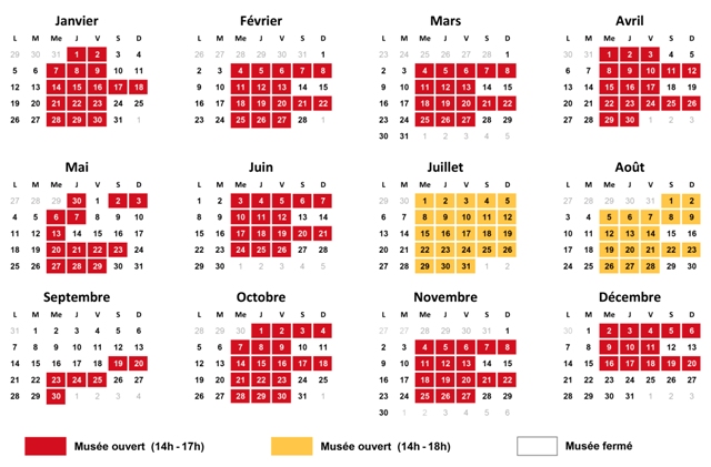 Calendrier d'ouverture du musée en